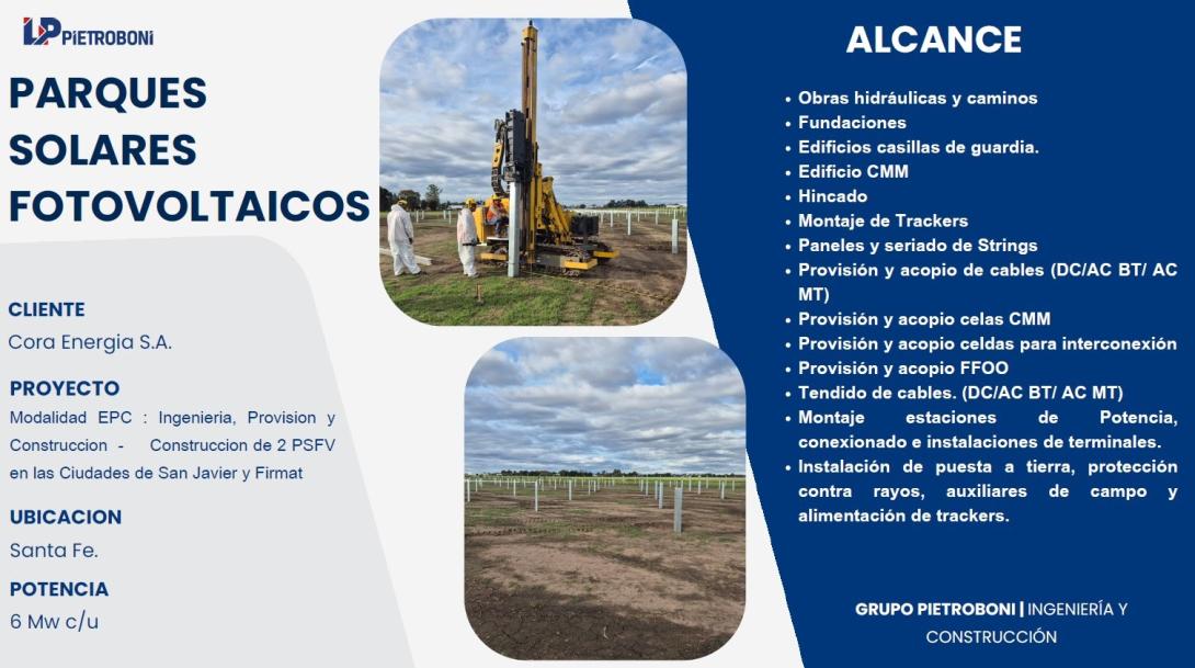 Ambos proyectos se desarrollan bajo la modalidad EPC para Coral Energía, y desde PIETROBONI estamos orgullosos de formar parte del proceso constructivo que impulsa la transición hacia una matriz energética más limpia y sustentable.